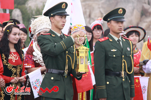 張娟娟和王峰點(diǎn)燃圣火瞬間