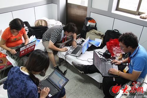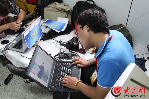 記者和圣火采集現(xiàn)場(chǎng)的工人閑聊