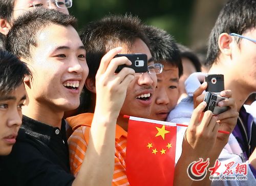 大眾網(wǎng)濰坊9月22日訊 今天,一個陽光明媚的金秋時節(jié),濰坊市迎來了全運火炬,這也是火炬?zhèn)鬟f山東省第四站。上午九點,啟動儀式在濰坊市人民廣場舉行,有90名火炬手參加了火炬?zhèn)鬟f,傳遞路線主要在勝利街進行。第一棒火炬手是奧運冠軍林偉寧,有近10萬市民在道路兩側(cè)夾道歡迎火炬手,為他們搖旗吶喊。