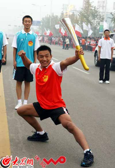 大眾網(wǎng)萊蕪訊 10月13日,“鋼城”萊蕪市會(huì)展中心廣場(chǎng),全運(yùn)火炬?zhèn)鬟f省內(nèi)第十五站啟動(dòng)儀式在這里舉行。儀式前,進(jìn)行了墊場(chǎng)表演,健身秧歌、街舞、啦啦操和健身球,演員的表演不是得到在場(chǎng)觀眾的陣陣掌聲,也為火炬?zhèn)鬟f增色不少。上午9點(diǎn),儀式開始。萊蕪市市長馬平昌致辭,在萊蕪市市委書記于建成和市體育局局長亓京云分別展示火炬后,第一棒火炬手王守東開始了傳遞。據(jù)了解,當(dāng)天的火炬?zhèn)鬟f路程有3公里,火炬手是68名。10月14日,火炬?zhèn)鬟f將移師泰安。(王宏光 攝影報(bào)道)