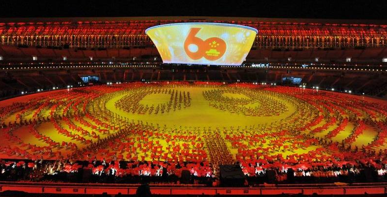 2009年10月13日,中國山東濟南,09全運會開幕式在夜間舉行帶妝彩排。開幕式分為山東特色、全民全運、新中國六十年成果展示三大部分。巍峨泰山的崛起、圣人孔子的誕生、黃河入海的氣勢,這些獨具山東特色的元素將在開幕式上一一展示。