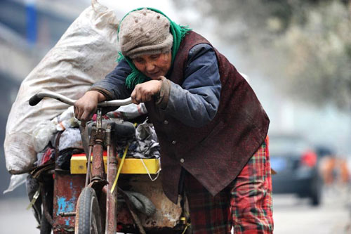 老人在收廢品的路上