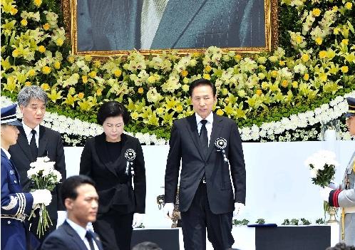 韓國總統李明博出席盧武鉉遺體告別...