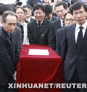 5月23日,今晨跳崖身亡的韓國前總統(tǒng)盧武鉉的遺體運往他的家鄉(xiāng)峰下村。