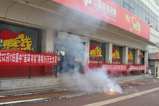 馬年正月農歷初八(2014年2月7日周五),伴著新春的祝福聲和昭示吉慶的瑞雪,萊蕪福彩以更強大的福彩助民生的社會責任感,高舉福彩扶老、助殘、救孤、濟困的宏偉宗旨,昂首闊步開始了新一年的福彩銷售管理工作。萊蕪市140處福彩投注站、兩個中福在線銷售廳和兩處刮刮樂中心站在新年福彩開市首日也呈現出了萬馬奔騰、昂揚奮進的好局面。截至早9點,萊蕪福彩所有終端銷售站已全部開機待售,萊蕪中福在線萊城銷售廳還特意燃放爆竹迎接馬年開市。