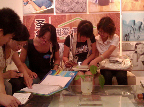 剛進圣象的前兩天,當時的主要工作就是接受培訓,記得那兩天,坐在開著空調的會議室里,大家都嫌凍得慌(后來的日子才知道在屋里真幸福),各個部門的領導給我們講述了相關的工作,當時記得最深刻的一句話就是“在圣象里,人人都會銷售。”當時就想,一定要把產品知識掌握好,即使平時不做銷售,也要在需要的時候能撐起一小片天(當時報的部門是客服內勤),可能是計劃有變,我們沒有分往各個部門,而是一起分組去往各個賣場考察學習,第一次去覺得有點做賊的感覺,畢竟不想買地板,只是去考察,但轉念一想,自己以后一定會買地板,就當提前考察了,心理的轉變使得工作變得順手,于是就以一名顧客的身份去了解了地板的品牌,價位。收獲也是比較大的,以后陸續去自己的賣場,倉庫,建材市場更多的去了解建材行業,而且去了客戶家里看我們辛苦勞動的安裝工人現場安裝,使得我們對地板的知識面有了一定的拓寬,那一周的工作相對比較輕松,。只因為后來開始了小區拓展。