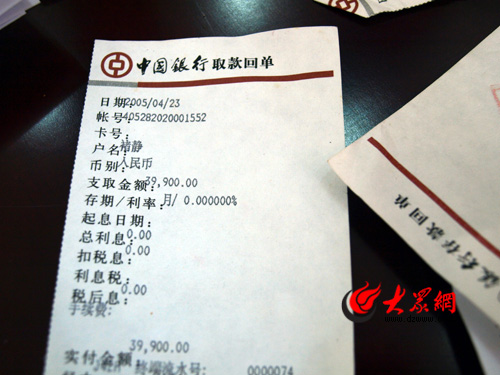 褚靜曾經購買電子配件的取款回執(圖)