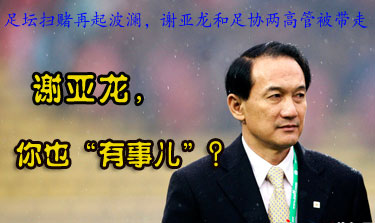 中國足協(xié)前任副主席、前足管中心主任謝亞龍于昨天被公安部門帶走接受協(xié)助調查。同他一起被帶走的,還有其他兩名中國足協(xié)高管——前國足領隊蔚少輝和負責...