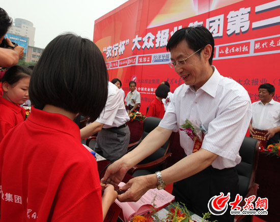 大眾報(bào)業(yè)集團(tuán)社長(zhǎng)許衍剛為讀者頒獎(jiǎng)