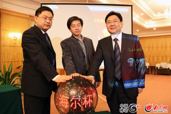 大眾網濟南4月30日訊(記者 曹亮 趙新婷 見習記者 韋輝 韋國騫) 4月30日上午,大眾網聯合世博會山東館合作伙伴、世界知名品牌海爾共同發起了“海爾杯”世博笑臉有獎征集活動正式啟動。山東省上海世博會山東館輪值副館長、山東省上海世博會參展工作領導小組辦公室綜合聯絡部部長陳越,山東大眾傳媒股份有限公司董事長兼總經理林忠禮,濟南海爾工貿有限公司總經理李鵬共同點擊開通“海爾杯世博笑臉有獎征集”網絡專題。