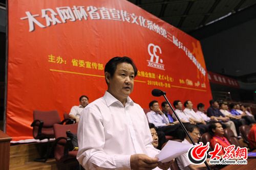 大眾報(bào)業(yè)集團(tuán)(大眾日報(bào)社)黨委書記、董事長、總編輯傅紹萬主持了今天的開幕式,省紀(jì)委副書記郭建昌、省委宣傳部副部長劉保聚、大眾報(bào)業(yè)集團(tuán)(大眾日報(bào)社)社長、黨委副書記許衍剛,山東出版集團(tuán)總經(jīng)理張麗生等省直機(jī)關(guān)和宣傳文化系統(tǒng)的十多位領(lǐng)導(dǎo)同志出席了開幕式。省委宣傳部副部長劉保聚代表主辦方致辭,大眾傳媒股份有限公司董事長、總經(jīng)理林忠禮代表協(xié)辦單位致辭。