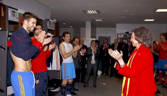 王后親臨西班牙更衣室祝賀 皮克險走光