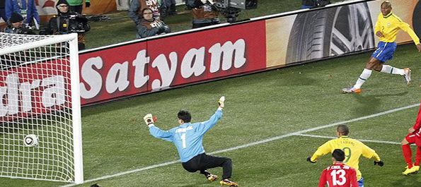 北京時間6月13日2時30分(南非當地時間12日20時30分),世界杯C組第1輪在勒斯滕堡皇家巴福肯體育場展開首場角逐,最終英格蘭1比1戰平美國。上半時,英格蘭隊長杰拉德打進本屆世界杯揭幕以來最快進球,但此后門將格林出現低級失誤,將鄧普西遠射漏進門內。下半場,美國前鋒阿爾蒂多雷射門被格林撲到門柱上。圖為英格蘭隊格林失誤丟球全過程。