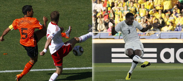 6月23日,澳大利亞隊球員肯尼迪(上)與塞爾維亞隊球員亞歷山大·盧科維奇爭頂。當日,在南非內爾斯普雷特舉行的2010南非世界杯足球賽D組最后一輪比賽中,澳大利亞隊以2比1戰勝塞爾維亞隊,但兩隊雙雙在D組中被淘汰。新華社記者徐速繪攝