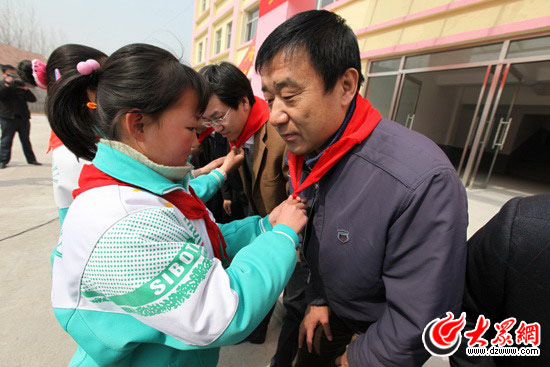 夏蔚鎮大眾希望小學的少先隊員為大眾報業集團社委、工會主席、黨群工作部主任耿春平,大眾傳媒股份有限公司(大眾網)董事長、總經理林忠禮系上紅領巾。