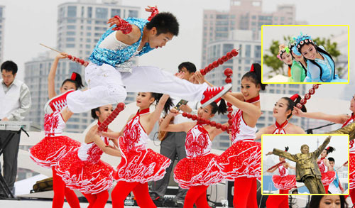 5月2日,中外觀眾依然最熱捧上海世博會中國館的“鎮館之寶”——巨幅放大電子動態版的北宋畫家張擇端名作《清明上河圖》。此世博版的《清明上河圖》高6.3米,長130余米,約是原圖的30倍,需要12臺電影級的投影儀同時工作。整個活動畫面以4分鐘為一個周期,盡展宋朝盛世的都市日夜風情。中新社記者 賈國榮 攝