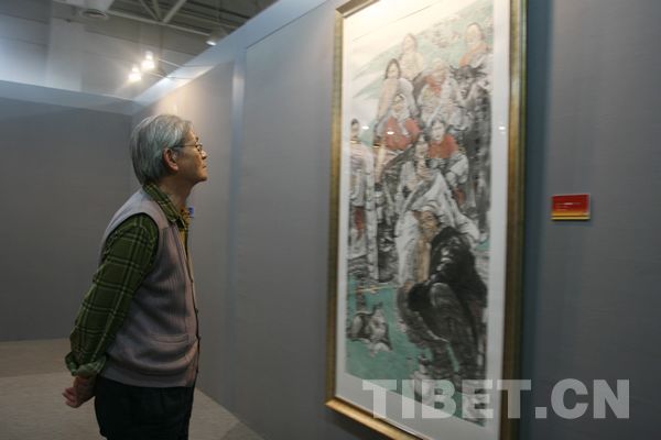 原來,邱老爺子以前曾經搞過油畫、版畫創作,平時比較關注美術資訊。在《新聞晚報》上看到首屆“和美西藏”作品展覽的消息,就過來看看。他說:“我對各類藝術展覽都很有興趣,也看了很多,但是在上海看到涉藏題材美術展還是第一次。我經常翻閱美術雜志,也從中看到過涉藏題材的繪畫作品,但是在家門口看展覽,感覺很不一樣。”