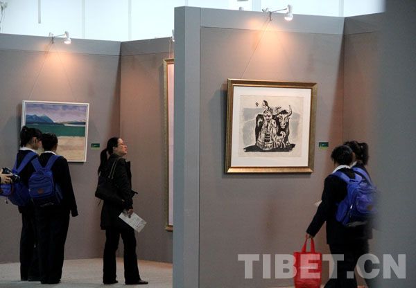 上海東輝職校高中生在參觀“和美西藏”美術作品 攝影:田春艷