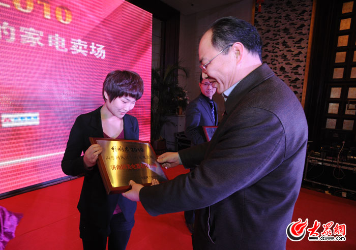 山東省家用電器行業協會會長曹海奎為獲獎企業代表頒獎
