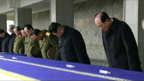 28日,金正恩等朝鮮黨政軍領(lǐng)導人、各界人士及外國駐朝使節(jié)出席了在平壤舉行的金正日遺體告別儀式。當天下起了雪,朝鮮數(shù)十萬群眾冒雪在街頭送別金正日。