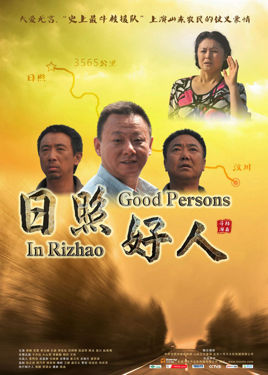 本著發揚民族精神的初衷,創作人員經過了多番劇本研討、辛苦拍攝、專家指導等過程,終于在汶川地震三周年之際,將“史上最牛救援隊”的故事搬上了銀幕。電影《日照好人》講述了山東農民自發抗震救災的路上所發生的點點滴滴。他們大多數“第一次出遠門”,經歷了三輪車不允許上高速公路、管閑事被毆打、違反交通規則被罰款、順子爺爺突然去世、山高路陡處險些喪命等一系列困難,但最后卻沒有一個人退縮,在經歷了種種磨難以后,他們最終知難而上,順利到達了目的地!度照蘸萌恕芬栽溨C幽默的表演,鮮活的人物刻畫,再現了山東人民以及其他全國各地區人民的抗震救災義舉。該片已榮獲2011年首批全國推薦優秀影片,國家電影審查委員會委員、中國電影評論學會副會長王人殷觀看影片后說“它鮮活地反映了中國的面貌,它不是概念的、不是口號的、是很真誠的,為中國電影畫廊里增加了一個新形象”。本片因取材獨特,意義非凡,吸引了邵峰、李玉峰、李勤勤、于月仙等眾多實力派演員出演,演員范雷也加盟其中,并擔綱主演。不僅如此,導演楊真也是地地道道的山東人,濃郁的地域特色增加了影片的真實性和趣味性。