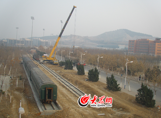 大眾網(wǎng)濟(jì)南12月12日訊(記者 王磊)今天下午,記者從山東建筑大學(xué)獲悉,該校鐵路文化展示基地建設(shè)有了新進(jìn)展,8節(jié)從客運(yùn)火車上退伍的綠車皮運(yùn)抵校園,與已有的火車頭連接后,一列完整的火車正式在校園亮相。據(jù)該校基建處處長(zhǎng)李端杰介紹,明年春天,該展示基地還將建設(shè)三棟德式火車站,預(yù)計(jì)整個(gè)工程將在明年年底前竣工。