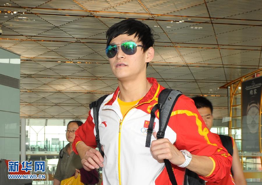 當日下午,在倫敦奧運會上贏得5金2銀3銅共10枚獎牌的中國游泳隊抵京,備受矚目的奧運冠軍孫楊、葉詩文在接受媒體采訪時第一時間表達了對關(guān)心和支持他們的所有人的感謝! ⌒氯A社發(fā)(馬儒壯 攝)