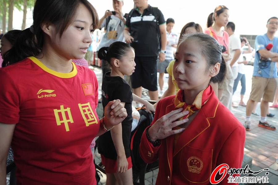 北京時間7月15日,中國國家體操隊離開北京,啟程趕赴倫敦,備戰(zhàn)即將開幕的奧運(yùn)會比賽。最后時刻因傷未能入選的老將程菲拄著雙拐來到現(xiàn)場,為隊友送行,場面感人。