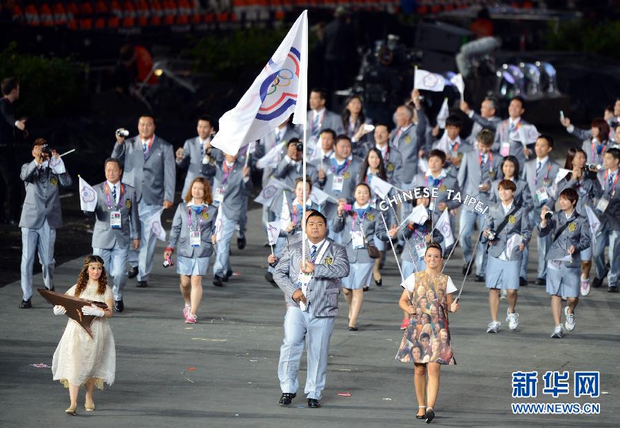 7月27日,第三十屆夏季奧林匹克運動會開幕式在倫敦奧林匹克公園主體育場“倫敦碗”舉行。這是中華臺北代表團入場。7月27日,第三十屆夏季奧林匹克運動會開幕式在倫敦奧林匹克公園主體育場“倫敦碗”舉行。新華社記者楊磊攝