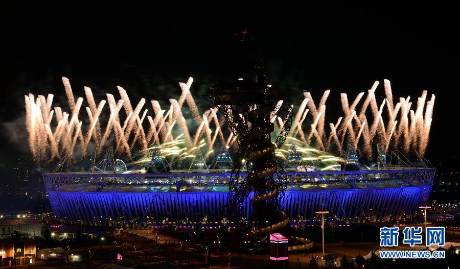 7月27日,第三十屆夏季奧林匹克運動會開幕式在倫敦奧林匹克公園主體育場“倫敦碗”舉行。這是開幕式上的焰火表演 新華社記者楊宗友攝 7月27日,第三十屆夏季奧林匹克運動會開幕式在倫敦奧林匹克公園主體育場“倫敦碗”舉行。