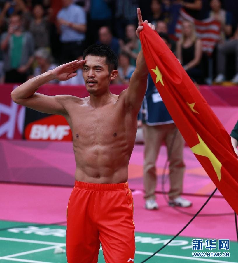當日,在倫敦奧運會羽毛球男單決賽中,中國選手林丹以2比1戰勝馬來西亞選手李宗偉,蟬聯奧運會男單冠軍。新華社記者任正來攝