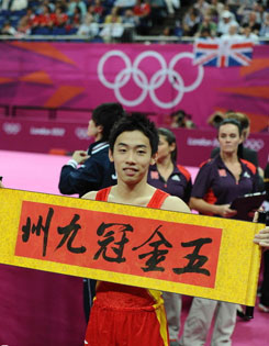 北京時間8月7日消息,2012年倫敦奧運會體操比賽今天在北格林威治競技場進入到了最后一個比賽日的爭奪,在率先進行的男子雙杠的比賽中,中國選手馮喆以15.966分摘得冠軍,為中國體操隊拿到了在本屆奧運會上的第三枚金牌!