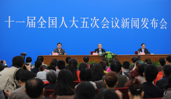 [提要] 2012年3月4日上午11時,十一屆全國人大五次會議在人民大會堂三樓金色大廳舉行新聞發布會,由大會發言人李肇星就會議議程和人大工作相關的問題回答中外記者的提問