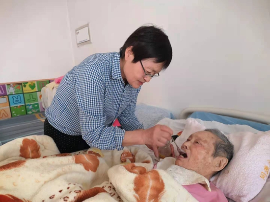 后來,楊樹慶也成為了“金水大媽”志愿服務隊中的一員,在小區(qū)里做志愿服務已有7年了。每天天不亮,楊樹慶先到小區(qū)中巡邏一會,再跑回家給王秀華準備早飯,換洗尿布。疫情期間,她每天堅守自己的崗位,做疫情防控宣傳,協(xié)助對外來人員進行登記、測溫。