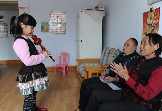 彭春梅的女兒琪琪多才多藝,做完作業(yè),經(jīng)常給奶奶、大伯吹上一段葫蘆絲。