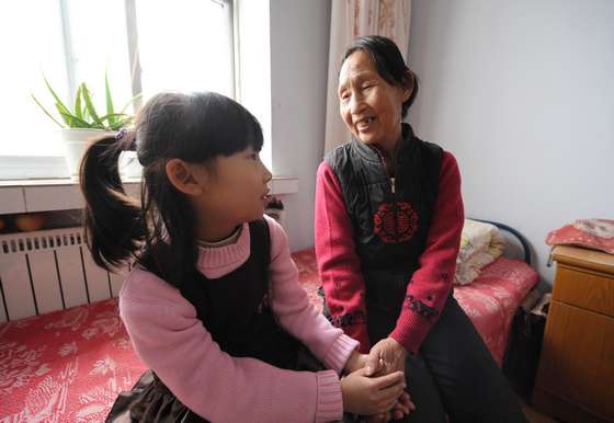 媽媽不在家,懂事的琪琪就學(xué)著照顧奶奶和大伯,給奶奶講故事。