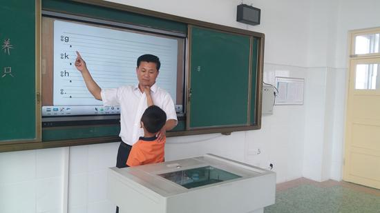 照顧聾啞孩子難,教聾啞孩子學說話更難,對聾啞孩子來說,教說話比教知識更重要。為了教孩子發音,他都是把孩子的手放在自己的脖子上,放在自己的嘴唇邊,讓孩子感受聲帶的顫動和送氣。在學習舌根音時,他甚至把孩子臟兮兮的小手伸進自己嘴里,觸摸發音時舌頭的位置,不停地帶讀,演示口型,展示發音部位,糾正學生發音?诟闪耍瓤谒^續教,喉嚨腫了,就吃片消炎藥,直到孩子們學會了,發音基本準確了,才肯停下來。雙休日家長來學校接孩子,孩子比較清晰的喊著“媽媽”撲到家長懷里,相擁而泣的場景他永遠不會忘記,這是他感到最幸福的時刻,這也是激勵他不知疲倦的工作、無怨無悔付出的最大動力。