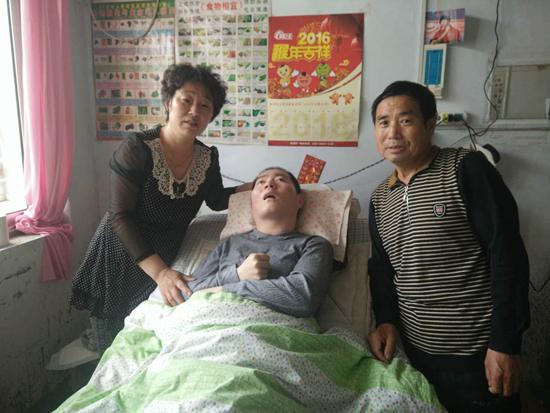 就這樣,她每天早上五點起床給丈夫做飯,給兒子按摩一小時,再給兒子做飯,喂上,夏天給兒子洗澡是最難的時候,兒子一米七八的個子,他身體都僵硬,不會打彎,丈夫未患病以前,還有丈夫一起照顧,丈夫患病后這一切重任就全落在了陶桂玲身上。她把兒子綁在自己身上,硬拉起來,搬到輪椅上,給他洗完澡,再從輪椅上挪到床上。再熱的夏天,再冷的冬天,兒子劉明的身體從未有過褥瘡,沒有過異味,這是連很多親媽都難以做到的,何況還是“后媽”呢。年復一年,日復一日,四千多個日日夜夜,她就這樣照顧著這個破碎的家,無怨無悔。