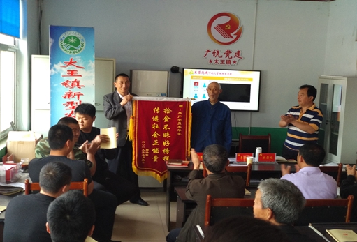 失主非常感動(dòng),見(jiàn)老人無(wú)論如何不要現(xiàn)金,五一假期過(guò)后,5月5日失主顧法征送來(lái)錦旗一面表示感謝。5月5日正是大王南村的黨員活動(dòng)日,李華北正在村委大院黨員活動(dòng)室,參加黨員活動(dòng)日,失主將錦旗送到黨支部會(huì)議室。大家才知道一向熱心腸的李華北五一期間居然做了這樣一件拾金不昧的好事,體現(xiàn)一名46年黨齡的老黨員的高尚風(fēng)格。