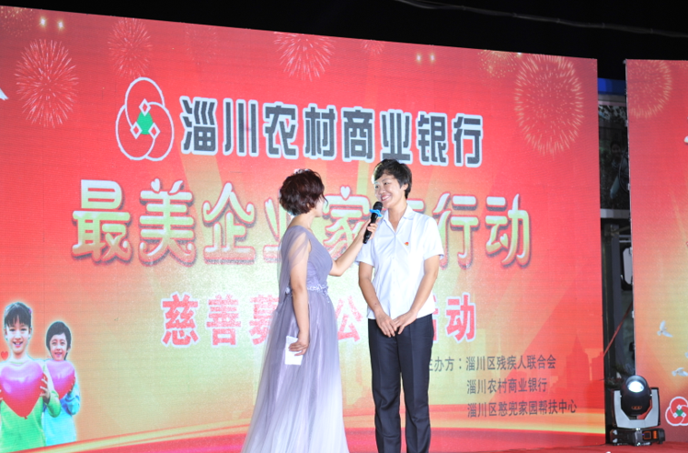 為了讓更多的人了解、關心、幫助這群孩子,她積極爭取行領導支持,在2018年7月20日,她組織舉辦了淄川農村商業銀行“最美企業家在行動”慈善募捐公益活動,向到場的愛心人士介紹孩子們的工藝品,當晚就為孩子們募集善款近18萬元。