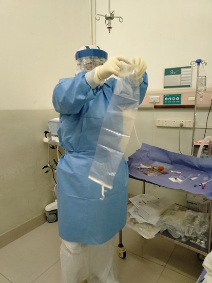 進駐武漢后,因具有一線抗擊疫情經(jīng)驗,陳博被任命為第7組組長,除負責對所在組隊員進行個人防護知識與技能培訓外,他帶領(lǐng)團隊圓滿完成了武漢三院首義院區(qū)的救治任務。