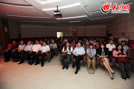 領(lǐng)導及采訪團記者一共觀看東阿阿膠企業(yè)宣傳片。(盛堃 攝影)