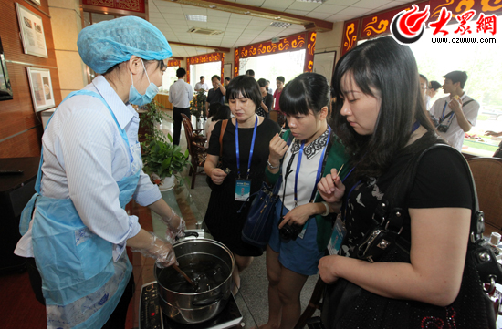 今天上午,科學發(fā)展新山東——“魯花杯”第八屆中國網(wǎng)絡(luò)媒體山東行西線采訪團走進中國阿膠博物館。(盛堃 攝影)