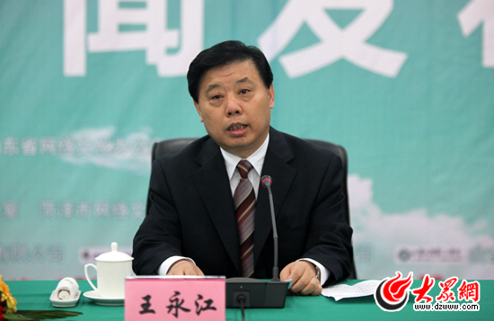 菏澤市委常委、宣傳部長王永江主持新聞發布會。(盛堃 攝影)