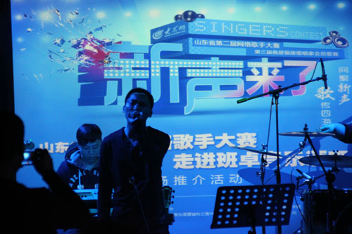 大眾網(wǎng)濟(jì)南12月9日訊 12月9日晚10點(diǎn),“新聲來(lái)了”山東省第二屆網(wǎng)絡(luò)歌手大賽走進(jìn)環(huán)山路班卓音樂(lè)酒吧進(jìn)行現(xiàn)場(chǎng)表演。截止目前網(wǎng)絡(luò)人氣最高的6名實(shí)力選手現(xiàn)場(chǎng)演繹拿手曲目,為現(xiàn)場(chǎng)朋友帶來(lái)非同凡響的“山東好聲音”,大家一起歡度難忘班卓夜。