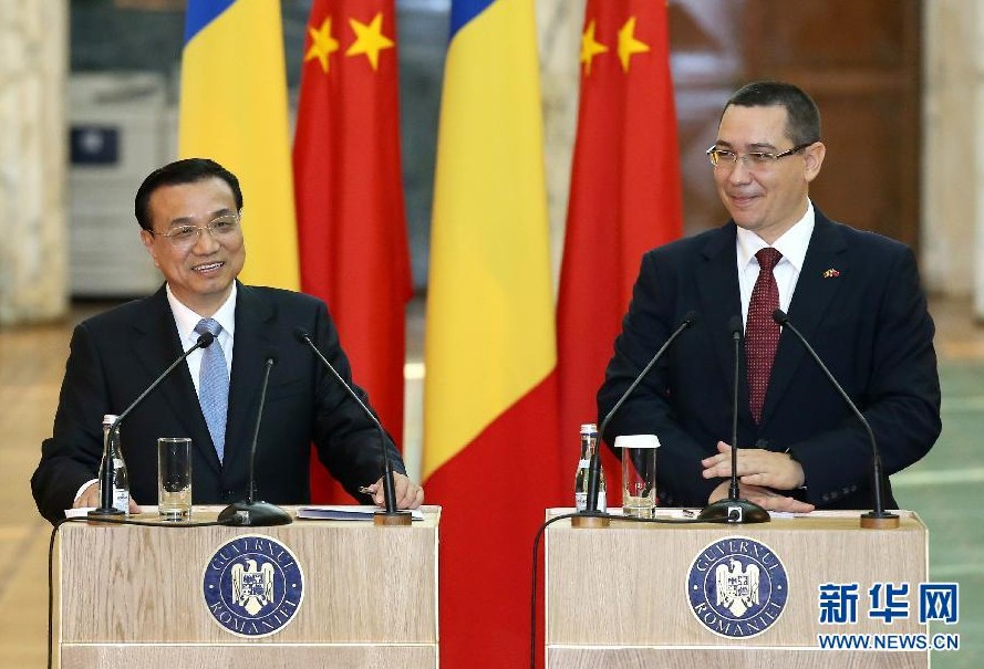 11月25日,國務院總理李克強在布加勒斯特同羅馬尼亞總理蓬塔舉行會談后共同會見記者。 新華社記者 龐興雷 攝