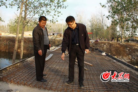 該村的“第一書(shū)記”王偉告訴記者,今年在董廟村修建了一座小橋,正在鋪設(shè)鋼筋的這座大橋主要是加固和加寬,以后車輛一律由大橋上通行。
