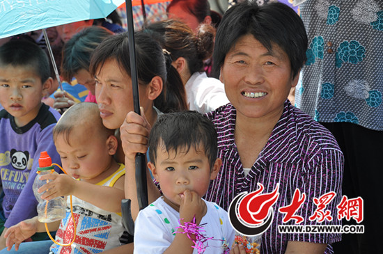 孩子們在奶奶的看護下觀看“六一”文藝演出。
