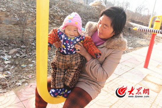 在綠竹芽村新建的健身廣場上,村民正帶著孩子玩耍。記者 張帆 攝