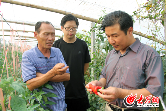 9月9日下午3:00,在蘆莊村村頭的大棚里,58歲的村民楊光順一邊摘辣椒一邊對記者說:“這塊地以前種的都是玉米。自從第一書記來了以后,給俺家補貼蓋起了塑料棚,現在棚里種西瓜、種辣椒還種豆角,一年下來能賺5萬塊,算算真是比種糧食實惠多了!”